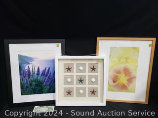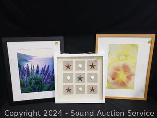 Lot #0156:     3pc Sea Life Shadowbox, Floral Print & Floral Photo Artwork