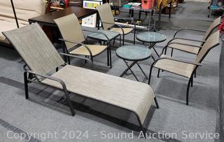 Lot #0024: 8pc Patio Chairs, Lounger, Side Tables