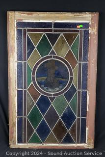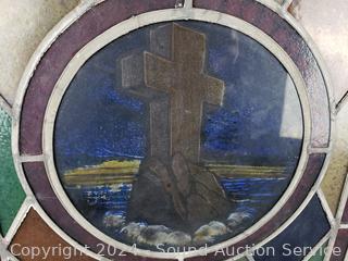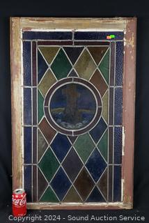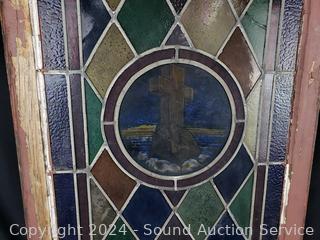 Lot #0280: Antique Framed Stained-Glass Church Window