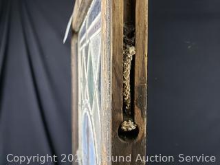 Came out of 100 year old church in Orange City Iowa. Has a broken panel. Comes with a card for a repairman. 37" x 24".