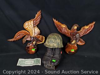 332 Lots including Rowe Sofa & Armchair, Power Lift Recliner, Rattan Wove Patio Set, Posturepedic Queen Beds, Utility Racks, Rug, Sewing Fabric, Corelle Dish Set, Vtg. Glassware, Indonesian Wood Masks, Fine China, Vtg. Home Decor, Antique Cabbage Slicers, Tempered Glass Sinks, Tinker Toys, US Coins, L.L. Bean Living Room Table set, Hat Box/Woen Baskets, Tools, Painted Milk Can, Step Stools, Boat, Vtg. Chalkware Statuaries, Vtg. Sports Trading Cards, Assorted Kitchen Cookware, Antique Stained-Glass Church Window, Trailer Hitch Cargo Carrier, Contemporary White Bedroom Set & Much More!!!