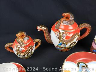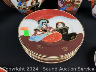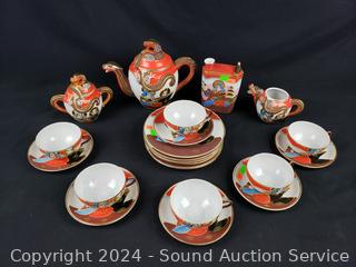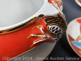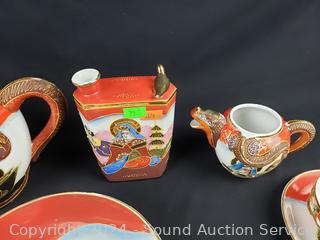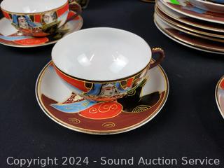 Lot #0070: Mid Century Japanese Satsumo Lithophane Geisha Eggshell Fine Porcelain Tea Set