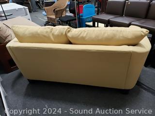 Lot #0002: Rowe Furn. Interline Ivory/Yellow Upholstered Loveseat