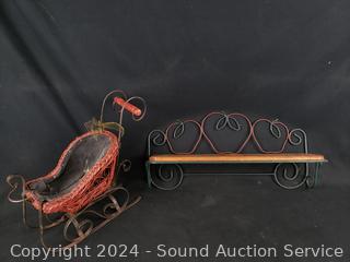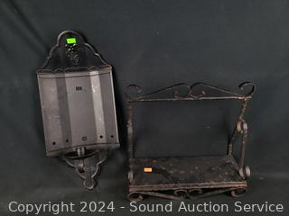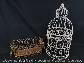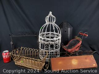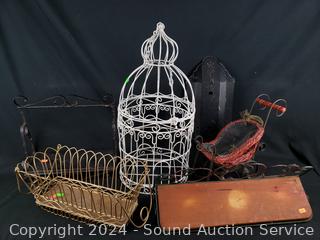 Lot #0180: Steel Bird Cage, Candle Sconce, Basket, Shelf Home Decor