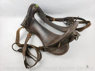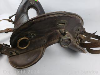 Some scuffs, wear to leather. Approx. 20" x 13" overall.