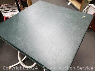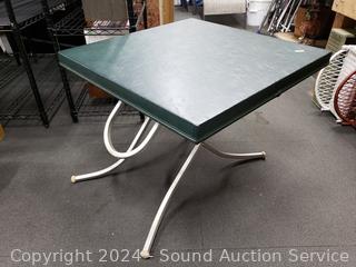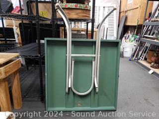 Lot #0200: Vtg. Green Vinyl Steel Base Folding Table