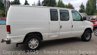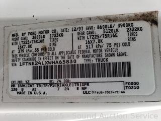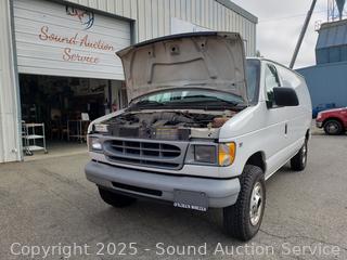 Great work vehicle! Comes with a clean title. VIN#1FTNE24LXWHA65830. 135,523K Miles. Runs/drives good a little wobbly at around 50-55 MPH but goes away beyond that. Brakes work good. AC/Heat/Fan appear to be working as intended. Check Engine light is on. Broken seatbelt on the driver's side, still clips in place. Radio works. Unsure if fuel gauge is working properly, accurate. Comes with 4 keys. Driver door doesn't lock, key mechanism is loose. All lights are working. Manual windows & Locks. Missing one hubcap & 2 are broken, tires are good. Dent on side cargo door. Seats have some tears.