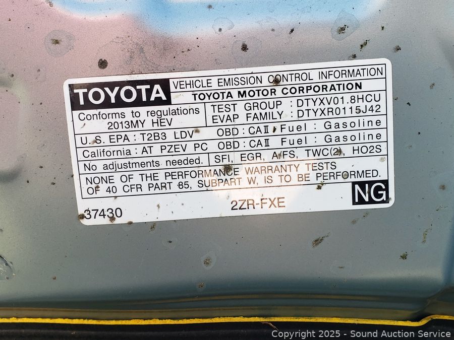Lot #0003K: 2013 Toyota Prius Hatchback