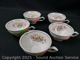 (5) cups, (6) Saucers, cream, sugar & teapot. Don't see any major issues.