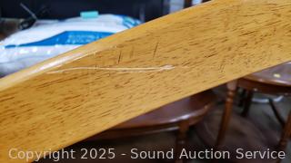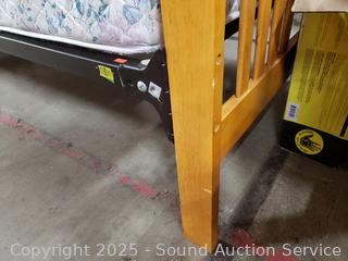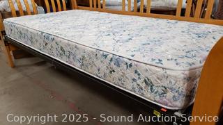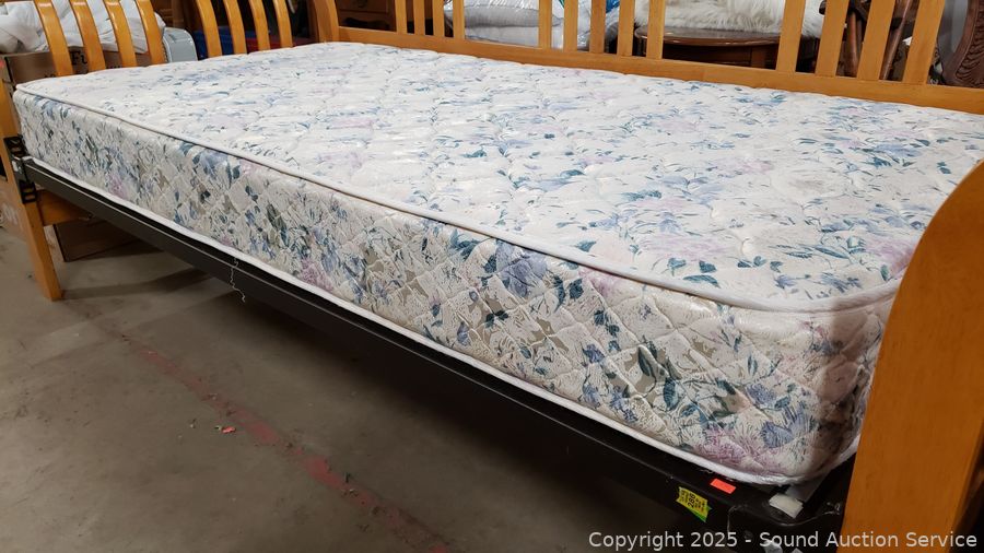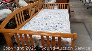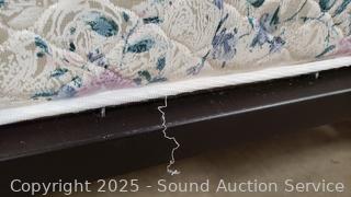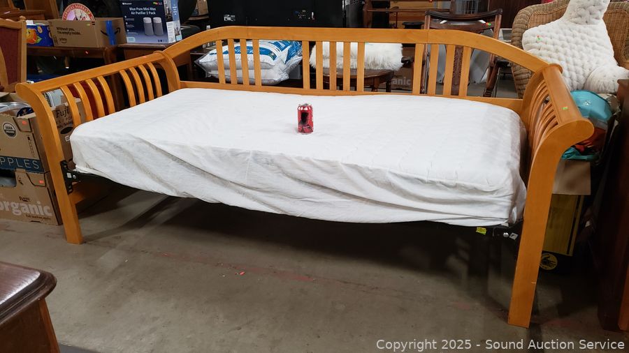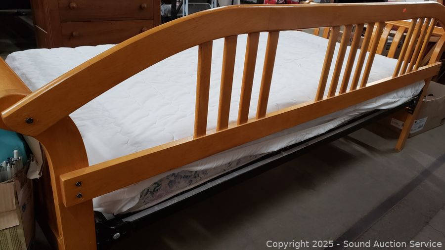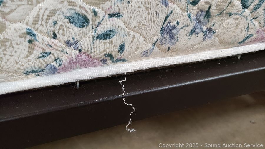 Some scuffs, wear to finish. 36" H x 87" W x 39.5" D. Don't see any issues with mattress.