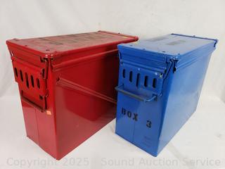 Lot #0048: Blue & Red Painted Steel Ammo Cases
