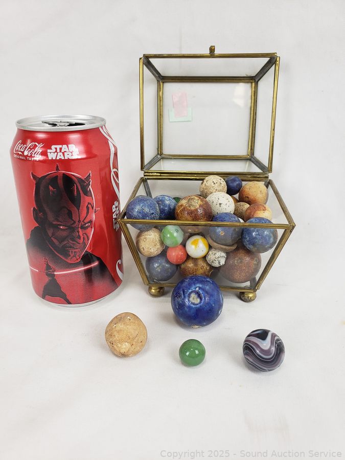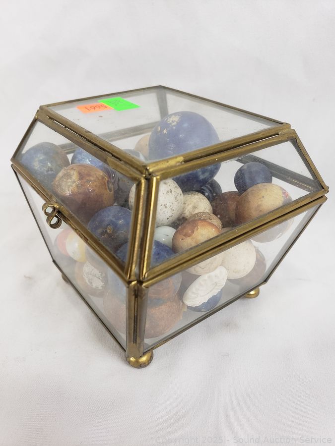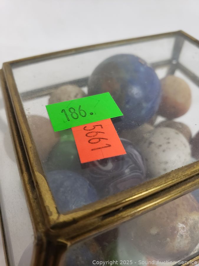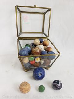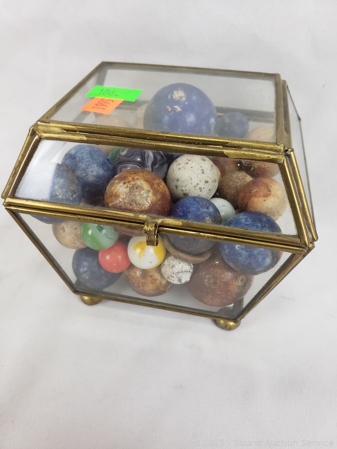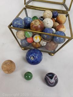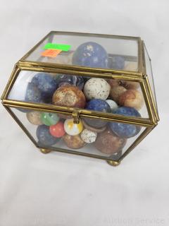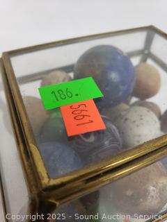 Lot #0186: Glass Trinket Box w/Vintage Stone Marbles
