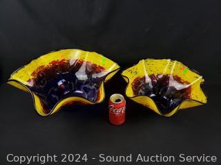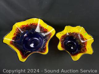Lot #0155: 2 Art Glass Scalloped Bowls