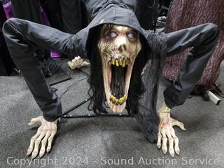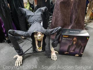 Comes with original box. Pop-up jumping motion, makes horrifying sounds. Approx. 3ft 8" H x 42" x 38". Appears to be functioning as intended, complete. Refer to video to see it in action!