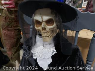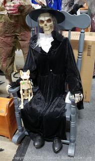 Lot #0031: Animated Rocking Skeleton Lady w/Cat Halloween Decor