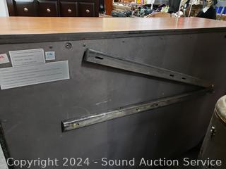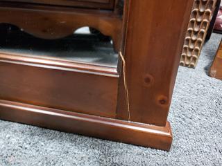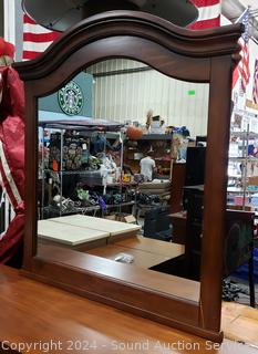 Matches the previous lot. 40" H x 56" W x 17" D with 40" H x 38" W mirror. Threading for bolt to attach mirror came out of the back of the dresser on the first one, we were not comfortable with installing with just the rest. As is. Otherwise in excellent condition.