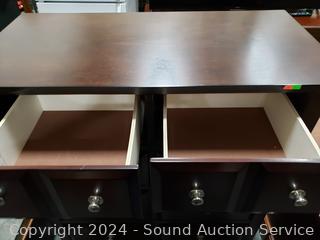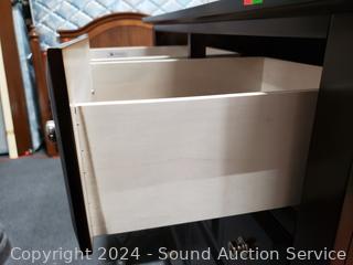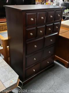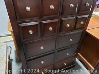 Cherry finish, wood fronts, veneer. In excellent condition. 52.25" H x 38" W x 19" D.