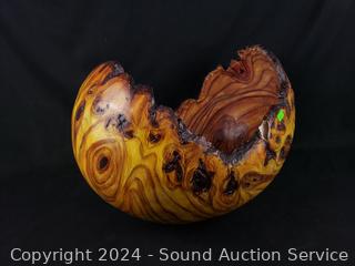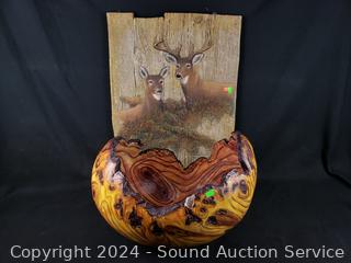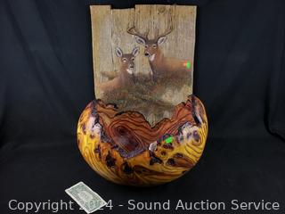 Lot #0096: Composite/Resin Burl Wood Grain Bowl & G.Turner Limited Door Wall Art