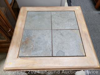 Lot #0019: Distressed Finish Tile Top Accent/Side Table