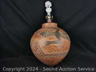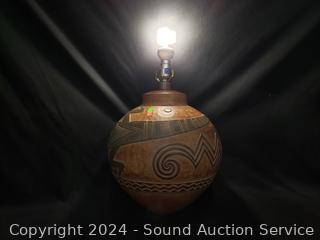 Lot #0050: Native Style Pottery Acorn Table Lamp