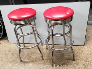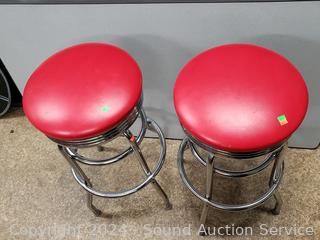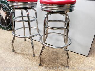 Lot #0201: Pair of Retro Red/Chrome Swivel Bar Stools