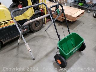 Lot #0293: Scotts Turf Builder Seed Spreader, Steel Rack