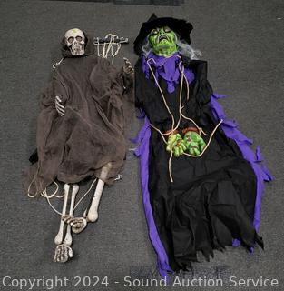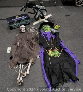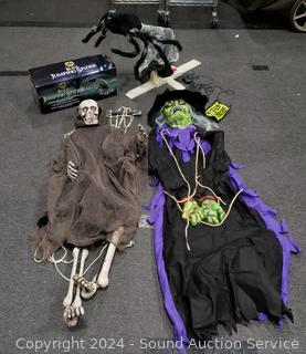 Lot #0280: Skelton, Witch & Black Jumping Spider Halloween Decor