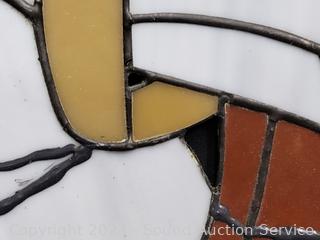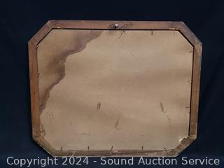 18" x 22" print, various wear damage to frame. 24" x 18.5" stained glass, missing 2 small pieces of glass or they are not supposed to be there, I don't know.