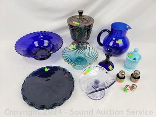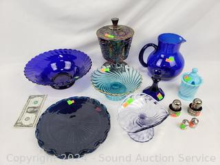 Lot #0127: 10pc Vtg. Glassware, Sterling & EPNS Shakers, Salt Cellars