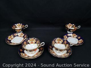 Elevate your teatime with this exquisite tea set! 4 cups, 4 saucers, 4 snack plates, cream, sugar. Some light wear to finish from use, don't see any major issues.