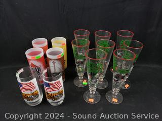 Lot #0185: 1950's Currier & Ives Pilsner, 1962 Seattle Worlds Fair & Coca-Cola Glasses