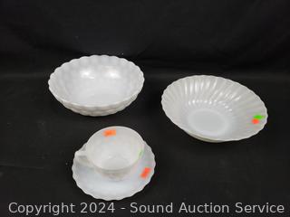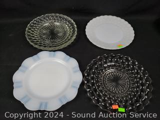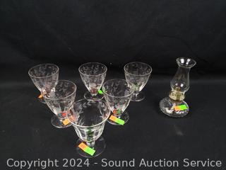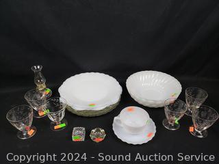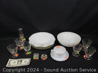 Lot #0106: 19pc Clear & Milk Glassware & Miniature Oil Lamp