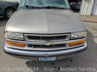 Comes with a clean title. VIN# 1GNCS13W4Y2376544. 4.3L 6-Cyl. Engine. Does not run, not sure what is wrong with it. We connected battery charger to get power, all lights flash bright to dim. 104K miles. Lights work, windows work, driver lock has to lock manually, all other locks work. Some damage on rear passenger fender. Interior in good condition, other than the damage on the rear fender, exterior is in good condition.
