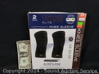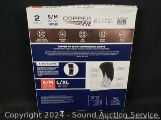 Lot #0277: 2pk Copper Fit Elite Compression Knee Sleeves S:S/M,12-16"