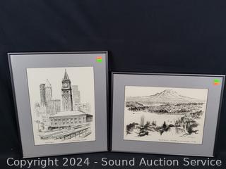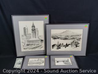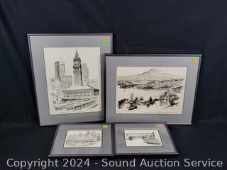 Lot #0206: 4 Hal Mize Seattle Sketch Lithographs