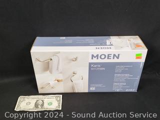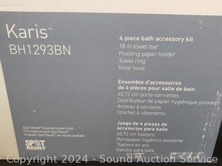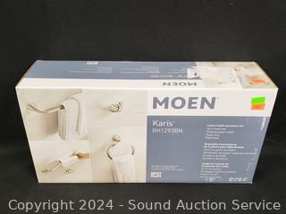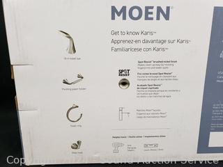 Lot #0307: 4pc Moen Karis Brushed Nickel Bath Accessory Kit