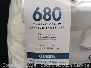 Lot #0283: 6pc 680TC Ivory Cotton Queen Sheet Set