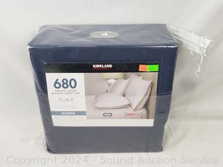 Lot #0298: 6pc Kirkland 680TC Pima Cotton Navy Queen Sheet Set