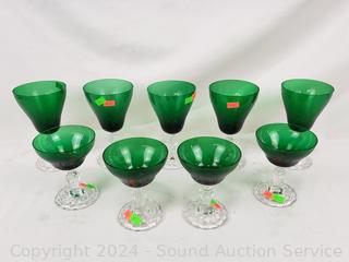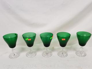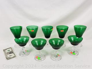 Lot #0109: 9pc Vtg. Fostoria Green Crystal Colonial Dame Footed Stemware