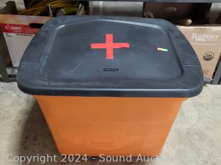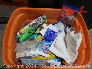 Tote full of oral hygiene, soaps, wipes, pain relief, first air supplies, survival supplies. Refer to photos for more details.