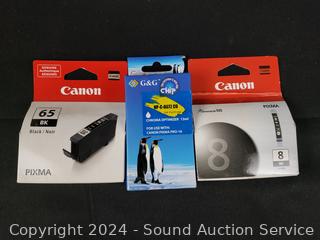 Canon 65, Canon 8, G&G NP-C-0072 PBK, Canon CLI-65, LD PGI-72. All appear sealed, refer to photos for more details.