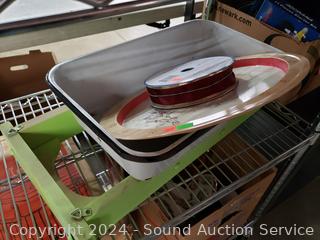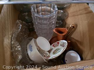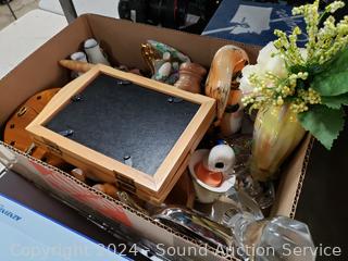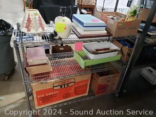 Lamps, assorted knick-knacks decor, Dictionaries, glassware, china, ice chest & more. ATTN: Items may be missing pieces, damaged, not functioning, complete, no issues, etc. All items as is. Refer to photos for lot contents. Cart NOT included.