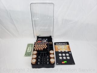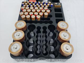 Lot #0091: Battery Organizer w/Assorted Batteries & Battery Tester