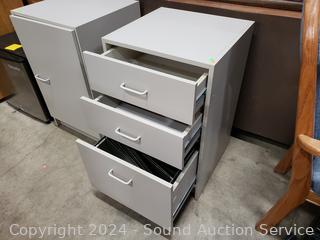 Lot #0050: Beige Laminate 3-Drawer Cabinet