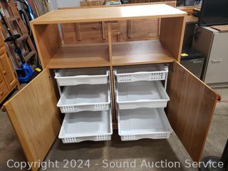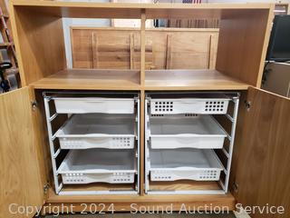 ClosetMaid organizers in lower cabinet with 6 basket drawers. 42.5" H x 42" x 23.5".