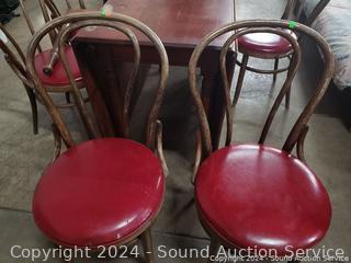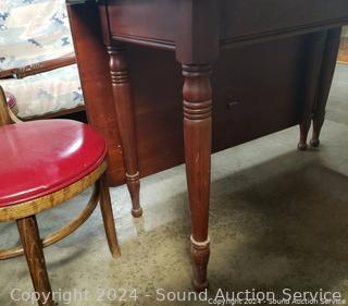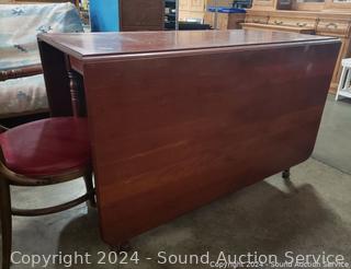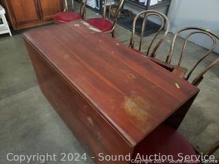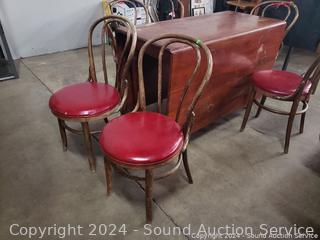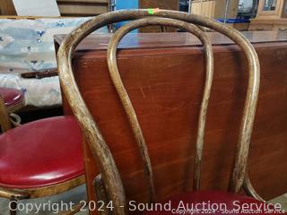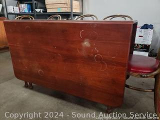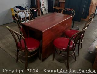 Lot #0279: Vintage Cherry Drop Leaf Table w/6 Bent Wood Vinyl Seat Chairs