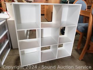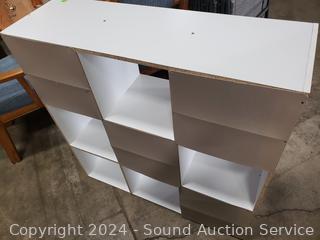 Lot #0007: White Laminate 9-Cubby Shelving Unit