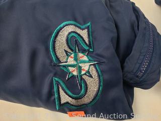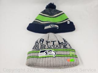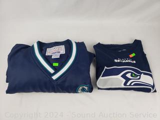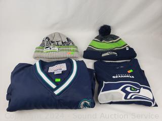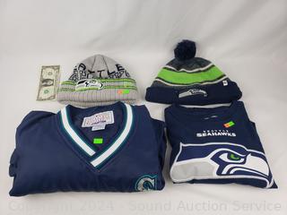 Lot #0127: 2 Knitted Seattle Seahawks Beanies, T-Shirt & Mariners Nylon Pullover S:2XL