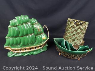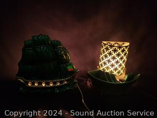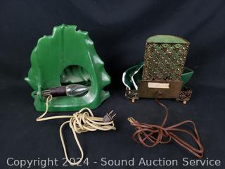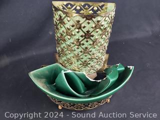 The pottery planter inserts for one got broken, comes with pieces, to repair or replace (all my fault, slipped out of my hands). Both lights functioning. 8.5" to 10" H x 9" to 10.5" W.