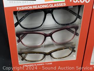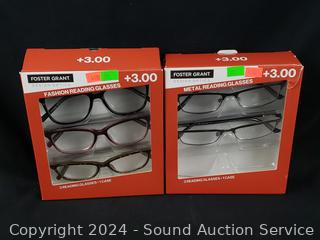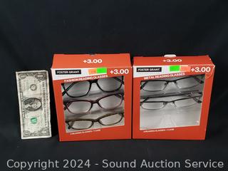 Lot #0277: 5 Foster Grant +3.0 Reading Glasses w/2 Cases